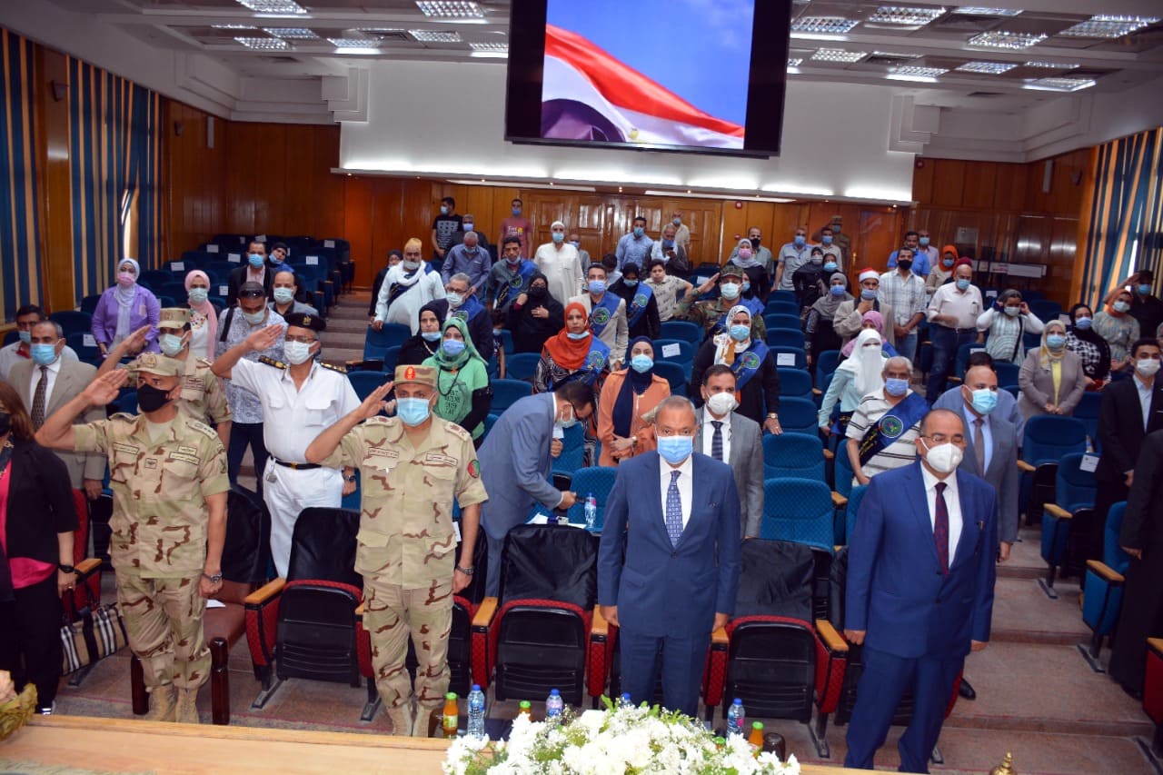 وفى الختام قام محافظ القليوبية ومدير أمن القليوبية ومدير جمعية المحاربين القدماء، بتكريم أسر الشهداء من الجيش والشرطة ومصابي العمليات الحربية.