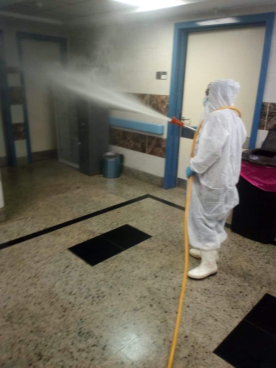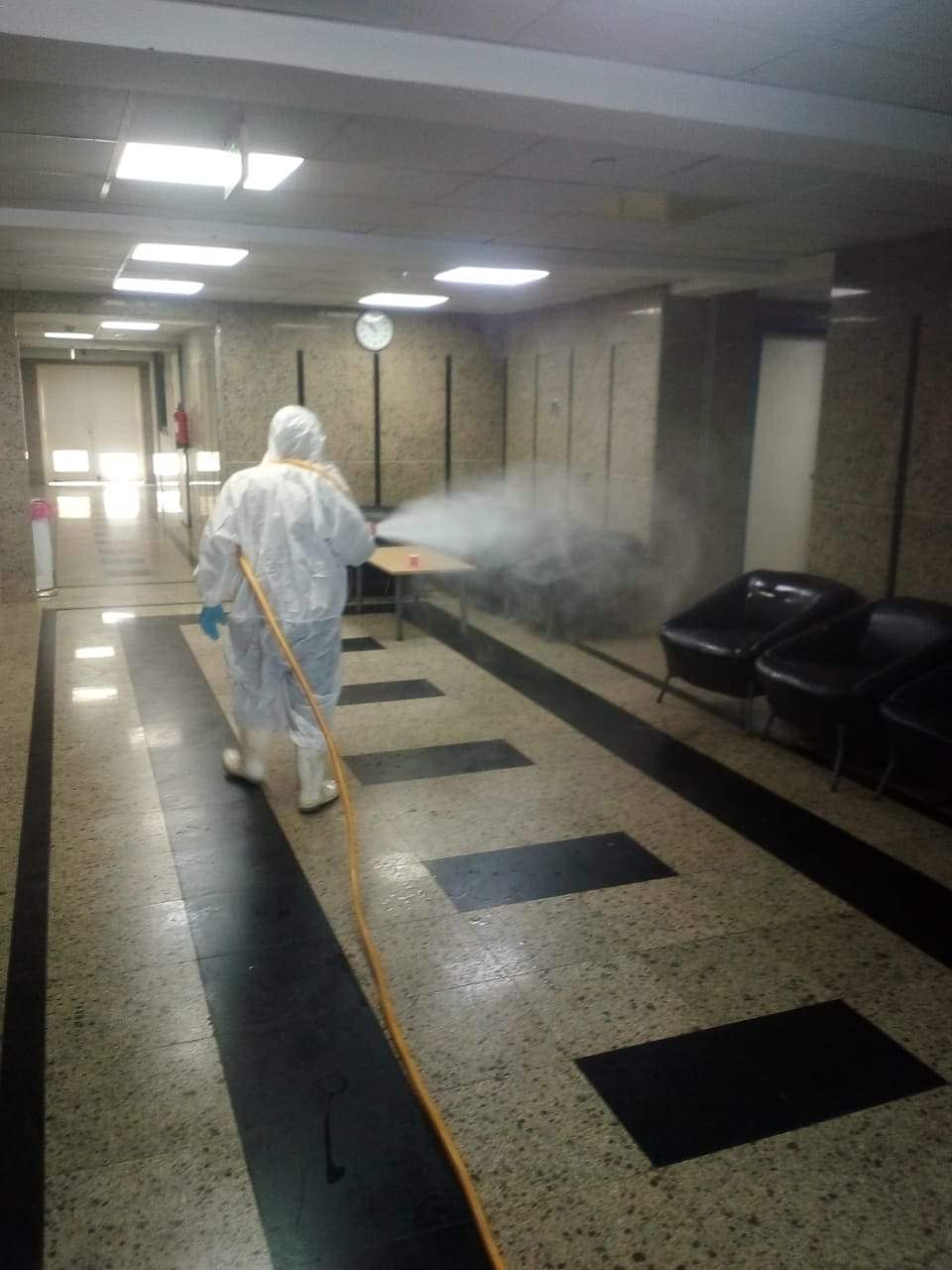كما تم رش وتطهير وتعقيم مستشفي قها المركزي