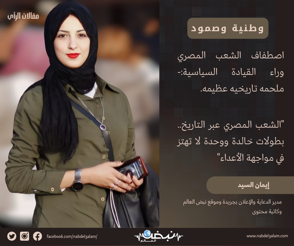 على مر العصور، شهد التاريخ الملاحم البطولية التي صنعها الشعب المصري في اللحظات الحاسمة، حيث يبرز الشعب المصري دوره بقوته ووحدته وإرادته، ويصطفي ليساند قيادته السياسية، رافضًا التعدي على السيادة المصرية، ومناصرًا للقضية الفلسطينية، التي كان للشعب المصري دور عظيم مشهود له فيها منذ قيامها حتى الآن. تقف مصر وحدها دفاعًا عن القضية، وكان وما زال المصري هو أول من يقف بجانب أشقائه، الشعب الحر الذي لا يهاب عدوًا ولا يخشى تهديد الأفاعي.