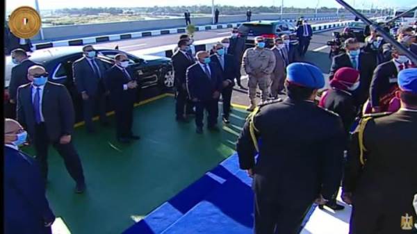 واستمع الرئيس السيسي إلى شرح من وزير النقل عن آلية العمل برصف وتجهيز المحاور الجديدة.