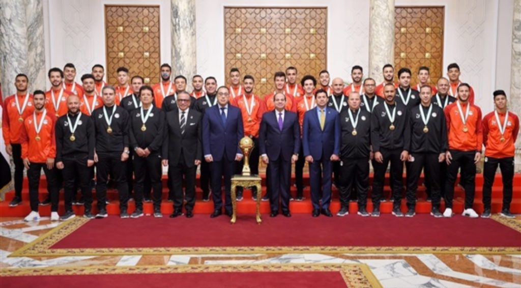 جاء ذلك خلال استقبال الرئيس كلا من المنتخب الوطني الأوليمبي لكرة القدم الحاصل على بطولة الأمم الأفريقية للشباب والمتأهل لأولمبياد طوكيو ولاعبي المنتخب الوطني للاسكواش الحاصلين على بطولتي العالم للكبار والناشئين وبعثة المنتخب الوطني للكاراتيه الحاصلة على بطولة العالم للشباب وبعثة المنتخب الوطني الباراليمبي المشاركة في بطولة العالم مؤخراً بأستراليا بالإضافة إلى الأجهزة الفنية التي تولت تدريبهم حيث قام الرئيس بمنح وسام الرياضة للأبطال الرياضيين.