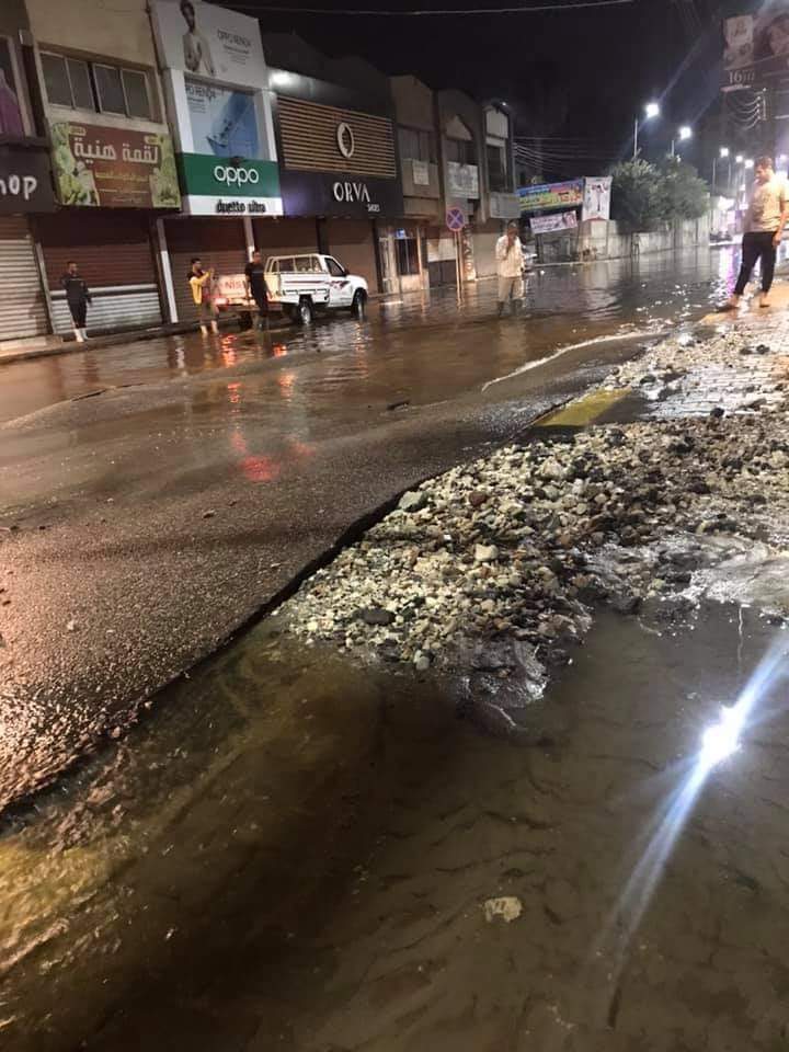 وأوضح عيد أن إنفجار الماسورة نتج عن هبوط أرضي تكرر مراراً وتسبب في كسر ماسورة المياة، مضيفاً ان المحال التجارية في الشارع تتعرض الآن للغرق وتلف البضائع بها وربما تحدث أخطار نحن في غنا عنها.