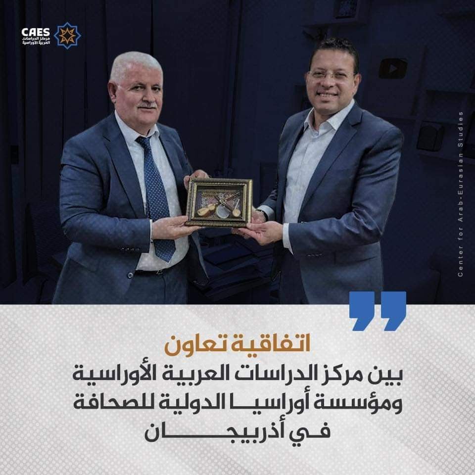 و يذكر أن مؤسسة أوراسيا الدولية للصحافة تأسست في العاصمة الأذربيجانية باكو عام ١٩٩٢، وتعد من أقدم المؤسسات غير الحكومية في الفضاء السوڤيتي السابق. وقد صرح السيد أومود ميرزاييف بأن الاتفاقية التي تم توقيعها في القاهرة، تتيح للمؤسستين النشر المشترك للأبحاث والدراسات في مواقعهما الإلكترونية، ومطبوعاتهما، وكذلك عقد الندوات في القاهرة وباكو. بدوره، أكد الإعلامي عمرو عبدالحميد أن هذه الخطوة تأتي ضمن برنامج موسع للتعاون بين مركز الدراسات العربية الأوراسية ومراكز ومؤسسات بحثية في دول عديدة.