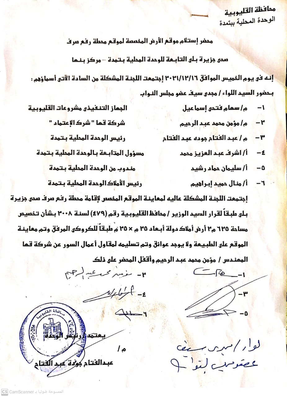 وأضاف “عرمان” أن الشؤون القانونية بمجلس مدينة ومركز بنها كان أصدرت قرار في شهر ابريل 2022، الي الوحدة المحلية ببتمدة يفيد بتمكين الجهاز التنفيذي لمياه الشرب والصرف الصحي، وعليه تدبير القوة الأمنية اللازمة بالتنسيق مع مركز شرطة بنهالتسليم الأرض لاستكمال انشاء محطة رفع صحي، الا اننا فوجئنا باعتذار مركز الشرطة عن الحضور، وبناء عليه لم نستلم الارض حتى اليوم.
