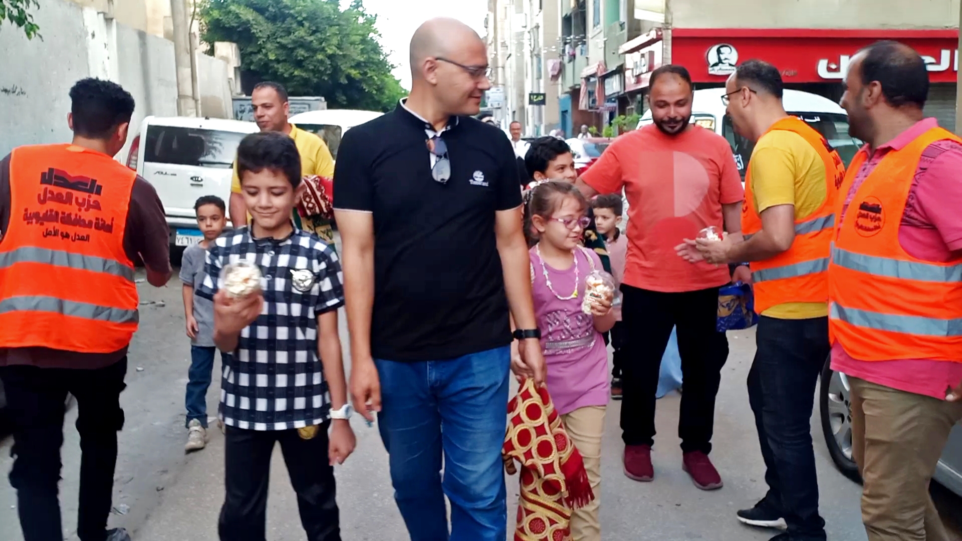 واستقبل الأطفال والأهالي “الحلوى والبالونات” بترحاب شديد، وبفرحة عارمة، وأحدثت الفعالية حالة من البهجة بين المواطنين، معبرين عن سعادتهم بذلك، وتجول شباب الحزب في عددا من الشوارع بمدينة بنها مرددين الاناشيد الدينية والاغاني لمشاركة المصريين فرحتهم بعيد الاضحى المبارك، وتوزيع أكواب الفيشار والحلوى والبالونات على الأطفال.