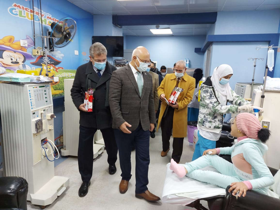 وقام رئيس الجامعة ومرافقوه بتوزيع الهدايا والورود على أطفال الغسيل الكلوي بمشاركة الإدارة العامة لرعاية الشباب بالجامعة ، كما تفقد وحدة العناية المركزة للأطفال ، ووحدة رعاية أمراض الشرايين التاجية.