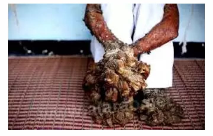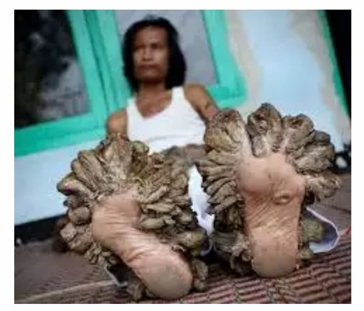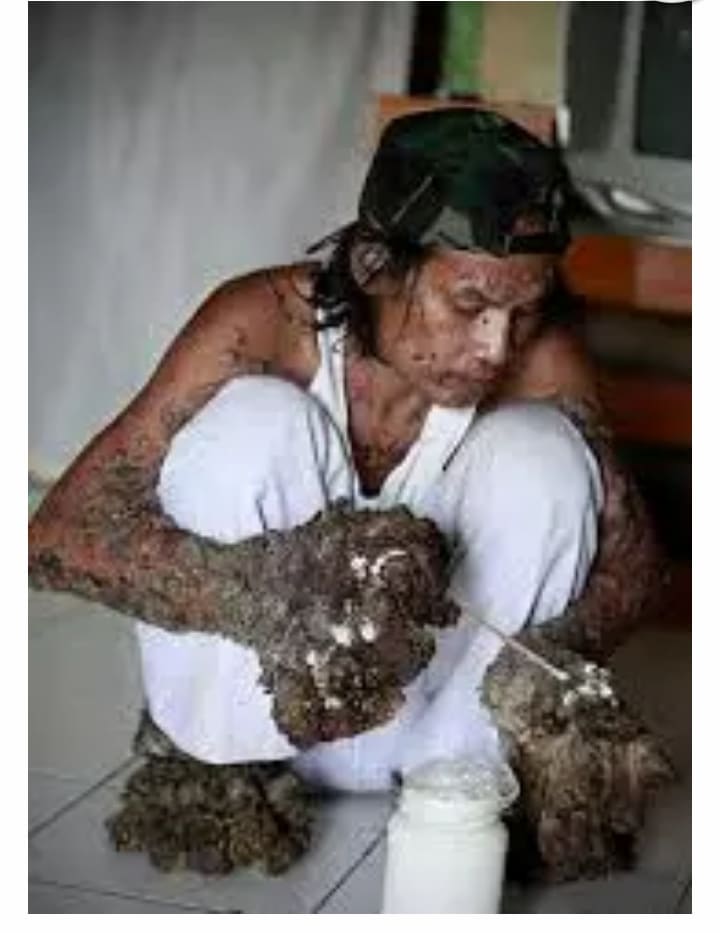 الرجل الشجرة واسمه الحقيقي ” ديدي كسوارا وهو يعاني من مرض ينتج فيروس الورم الحليمي البشري (HPV) ترافقه التهابات غير منضبطة ونمو لثآليل متقشرة تشبه أوراق الشجر.