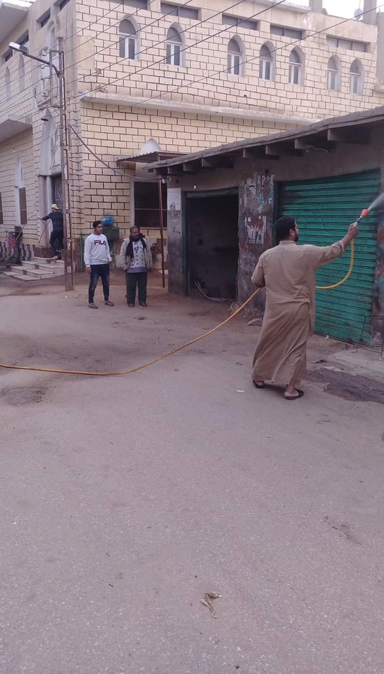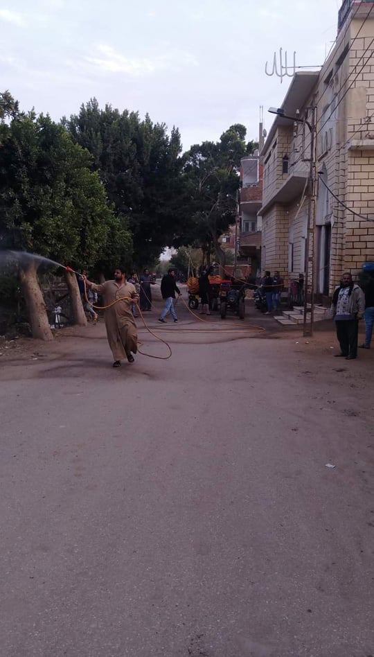 قامت مجموعة من شباب قرية كفر منصور، طوخ، القليوبية، بأعمال التطهير والتعقيم