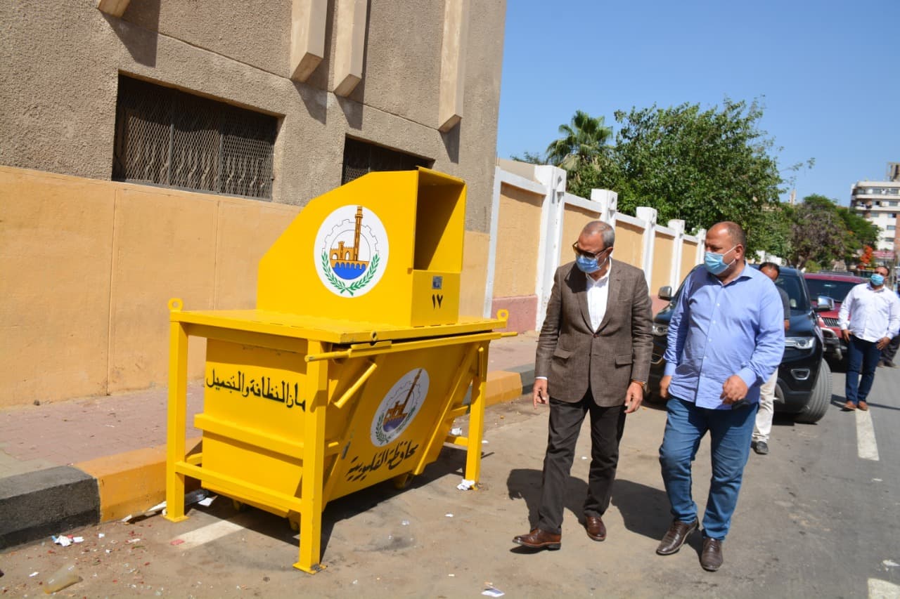 محافظ القليوبية يتابع تجربة وضع صناديق القمامة الصديقة للبيئة بشوارع مدينة بنها
