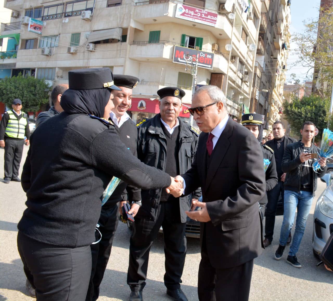قام المحافظ بمشاركة رجال الشرطة في توزيع الزهور على المواطنين أمام مبنى ديوان عام المحافظة.