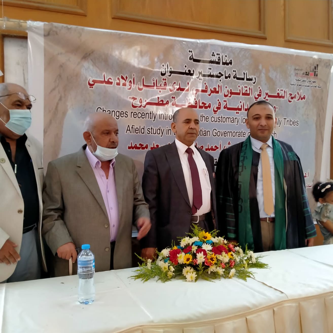 ناقش المعهد العالي للفنون الشعبية بأكاديمية الفنون رسالة ماجستير للباحث أحمد صلاح خطاب بعنوان ملامح التغير في القانون العرفي لدى قبائل أولاد علي “دراسة ميدانية فى محافظة مطروح” وقررت لجنة المناقشة والحكم منحه درجة الماجستير بتقدير ممتاز والتى تمت مناقشتها بقاعة الدكتور عبدالحميد يونس بالمعهد .