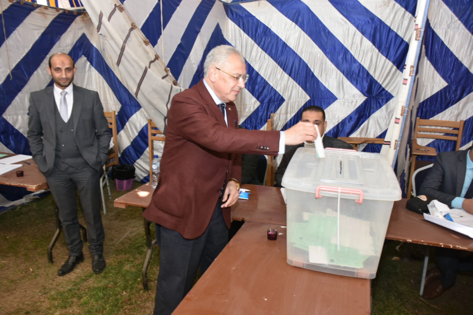 المهندس مصطفى مجاهد يدلي بصوته في انتخابات الإعادة على منصب النقيب العام