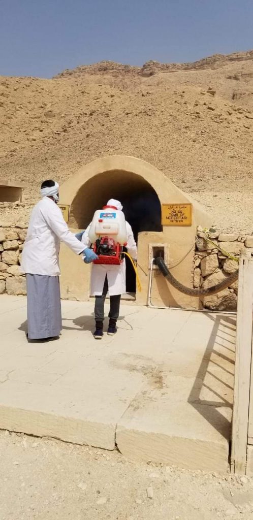 ومن المقرر أن تستمر أعمال التعقيم والتطهير بصفة مستمرة طوال فترة إغلاق المواقع والمتاحف الاثرية والتي ستدوم حتى نهاية شهر مارس الجاري.