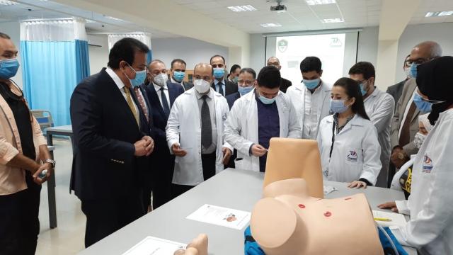 وأثناء تفقد قاعات التدريب والمحاكاة بكلية الطب البشري، وجه الدكتور خالد عبدالغفار العديد من الأسئلة إلى الطلاب، وقام بتوضيح بعض المعلومات حول كيفية التعامل مع المرضى.